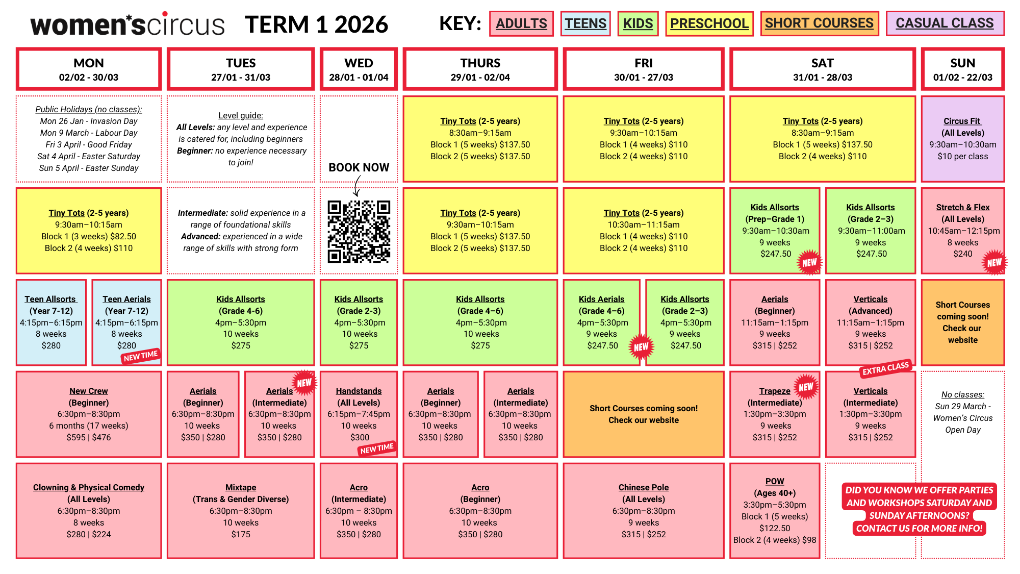 My daughter has been doing classes at Women's Circus for seven years. She's not particularly athletic or talented, but the strength and physical confidence she has gained due to the mutually supportive and non-judgemental environment created by the instructors has been invaluable. We are grateful for the focus on helping kids improve, the lack of assessments or levels to achieve, and the term based program. This is a valuable contrast to the profit focused world of kids activities in general."